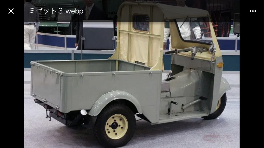 なんと!かつて日本で生産されていたオート3輪のダイハツ・ミゼットです。